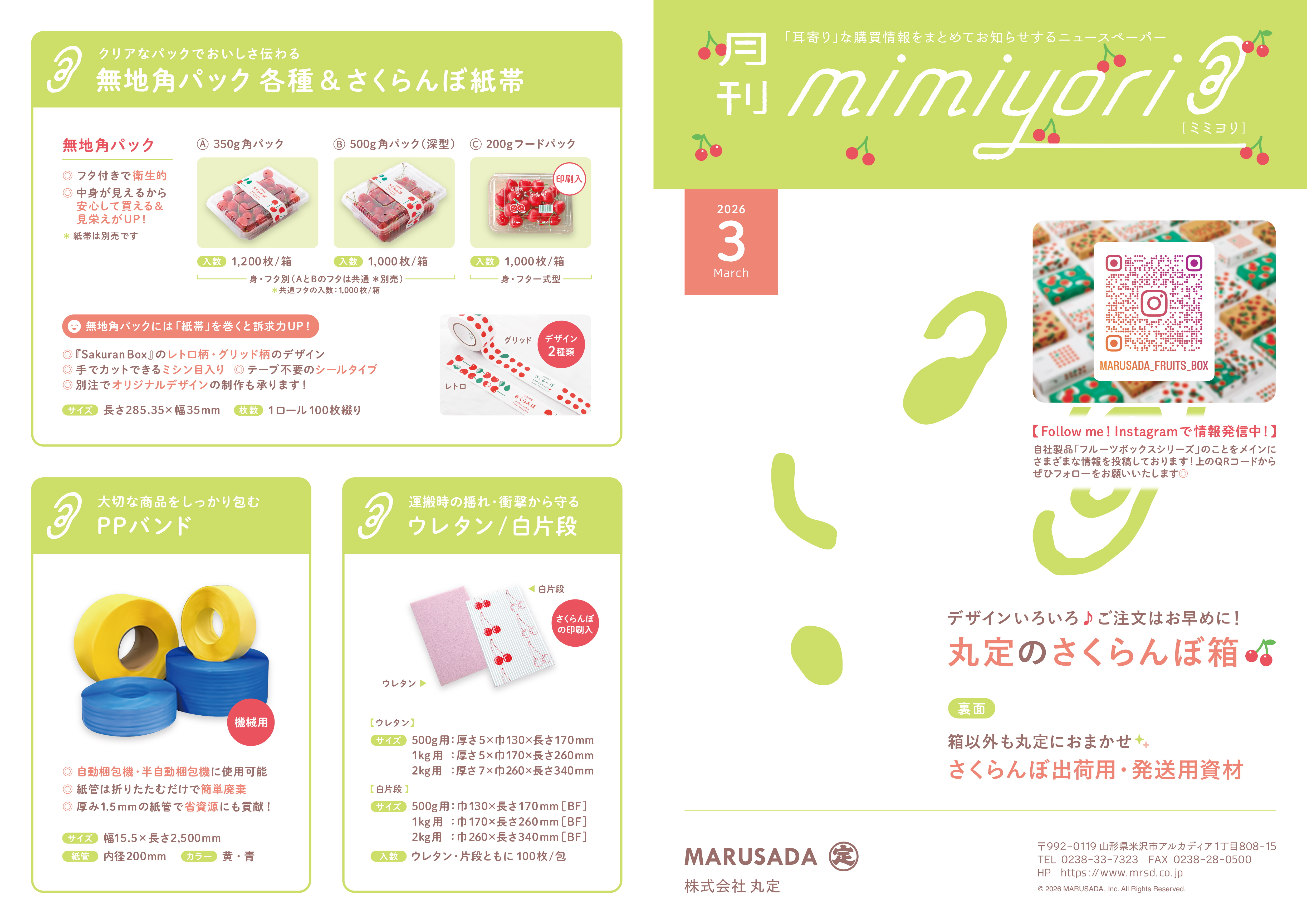3月号は、弊社で在庫しているさくらんぼ資材をご紹介いたします。
